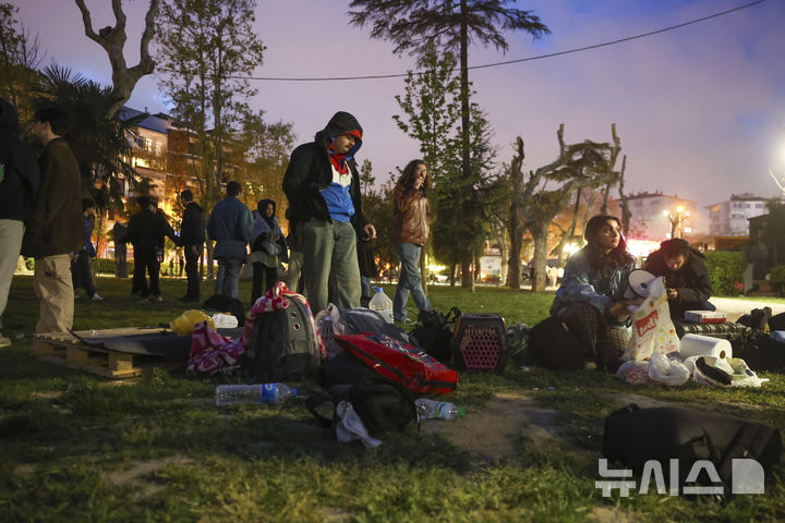 [이스탄불=AP/뉴시스] 23일(현지 시간) 튀르키예 이스탄불 주민들이 앞서 발생한 지진으로 공원에 대피해 있다. 이날 오후 이스탄불 인근 해상에서 규모 6.2의 지진이 발생해 현재까지 최소 360명이 부상한 것으로 전해졌다. 2025.04.24.