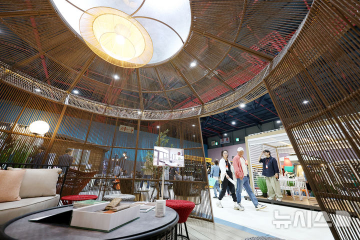 [서울=뉴시스] 김진아 기자 = 24일 서울 강남구 세텍에서 열린 건축·인테리어 자재, 전원주택 박람회 '2025 서울경향하우징페어'를 찾은 관람객들이 전시장을 둘러보고 있다. 2025.04.24. [email protected]