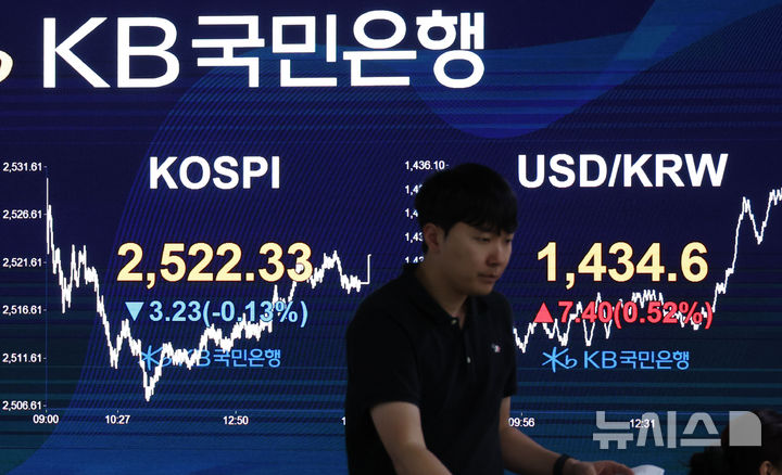 코스피가 전 거래일보다 3.23포인트(0.13%) 하락한 2522.33에 마감했다. 코스닥 지수는 전 거래일 대비 보합인 726.08, 원·달러 환율은 전 거래일보다 14.4원 오른 1435.0원에 마감했다. 2025.04.24. [email protected]