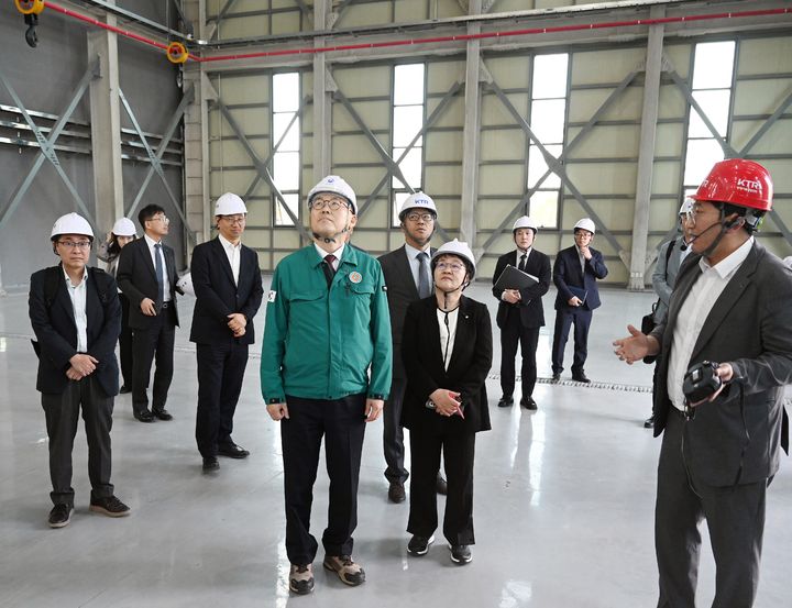 [서울=뉴시스] 김금보 기자 = 이한경 행정안전부 재난안전관리본부장이 24일 충남 홍성군에 위치한 한국화학융합시험연구원 방재기술시험센터를 방문해 장비 구축·도입중인 시설을 둘러보고 있다. (사진=행안부 제공) 2025.04.24. [email protected]