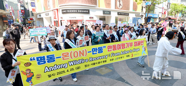 '안동으로의 여행이 곧 기부'라는 메시지를 전달하고자 진행된 이번 캠페인에는 안동시청, 안동시관광협의회, 상인연합회, 재경향우회, 명동상인협의회, 명동관광특구협의회 등이 참여했다. 2025.04.25. [email protected]