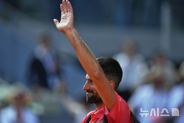 [마드리드=AP/뉴시스] 노바크 조코비치(5위·세르비아)가 26일(현지 시간) 스페인 마드리드에서 열린 남자프로테니스(ATP) 투어 마드리드 오픈 단식 2라운드에서 패한 후 팬들에게 인사하고 있다. 조코비치는 그의 첫 경기에서 마테오 아르날디(44위·이탈리아)에게 0-2(3-6 4-6)로 패해 탈락했다. 2025.04.27.