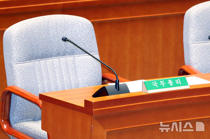 [서울=뉴시스] 고승민 기자 = 28일 서울 여의도 국회에서 열린 제424회 국회(임시회) 예산결산특별위원회 제1차 전체회의에서 한덕수 국무총리의 자리가 비어 있다. 2025.04.28. [email protected]