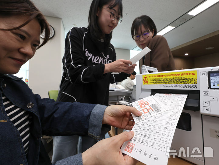 [인천=뉴시스] 전진환 기자 = 28일 오후 제21대 대통령선거 사전투표소 장비 담당사무원 교육이 실시된 인천 미추홀구 정부합동청사 인천시선거관리위원회에서 선거사무원들이 장비 사용 실습을 하고 있다. 2025.04.28. [email protected]