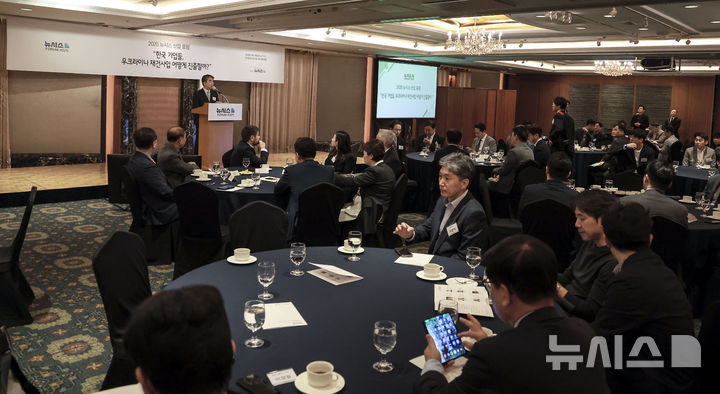 [서울=뉴시스] 정병혁 기자 = 염영남 뉴시스 대표이사 사장이 29일 서울 중구 롯데호텔서울에서 열린 2025 뉴시스 산업 포럼 '한국 기업들, 우크라이나 재건사업 어떻게 진출할까?'에서 인사말을 하고 있다. 2025.04.29. [email protected]