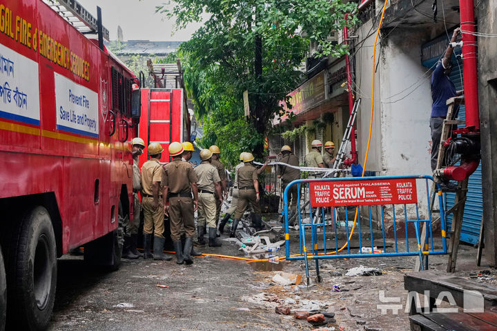 [콜카타=AP/뉴시스] 30일(현지 시간) 인도 서벵골주 콜카타에서 소방관들이 화재가 발생했던 호텔을 조사하고 있다. 현지 경찰은 전날 밤 콜카타 시내 리투라지 호텔에서 화재가 발생해 최소 15명이 숨졌으며 화재 원인은 조사 중이라고 밝혔다. 2025.04.30.