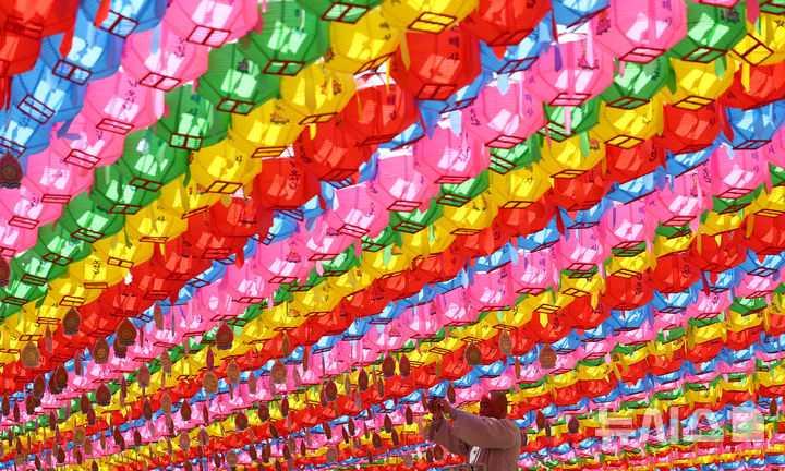 [영천=뉴시스] 이무열 기자 = 부처님 오신 날을 앞둔 30일 경북 영천시 청통면 은해사에서 스님이 연등에 소원지를 달고 있다. 2025.04.30. [email protected]