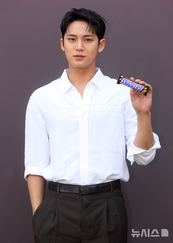 [서울=뉴시스] 김혜진 기자 = 그룹 세븐틴 민규가 2일 오전 서울 성동구 엠엠성수에서 열린 초코바 브랜드 스니커즈 에너지 스테이션 팝업 포토행사에서 포즈를 취하고 있다. 2025.05.02. [email protected]