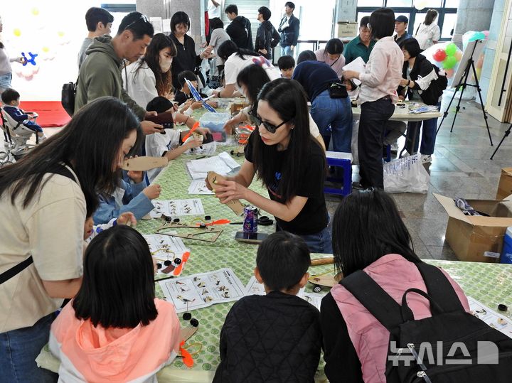 [제주=뉴시스] 오영재 기자 = 어린이날 연휴 첫날인 3일 오후 제주학생문화원에서 '2025 어린이 행복축제'가 열리고 있다. 이날 강풍특보가 내려지면서 대부분의 야외 행사가 중단되고 실내에서 운영됐다. 2025.05.03. [email protected]