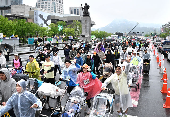 [서울=뉴시스] 추상철 기자 = 3일 오전 서울 종로구 광화문광장에서 열린 '서울 유아차 런(RUN)'에서 참가자들이 출발을 하고 있다. (사진= 서울시 제공) 2025.05.03. [email protected] *재판매 및 DB 금지