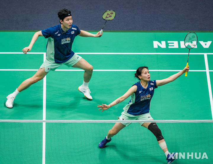 [샤먼=신화/뉴시스] 서승재-채유정이 3일(현지 시간) 중국 푸젠성 샤먼에서 열린 2025 세계배드민턴연맹(BWF) 수디르만컵 인도네시아와의 준결승 혼합 복식 1경기에서 데얀 페르디난시아-시티 파디아 실바 라마단티 조와 경기하고 있다. 서승재-채유정이 2-0(21-10 21-15)으로 이긴 한국이 매치 스코어 3-2로 승리하며 결승에 올라 일본을 3-0으로 완파한 중국과 패권을 다툰다. 2025.05.04.