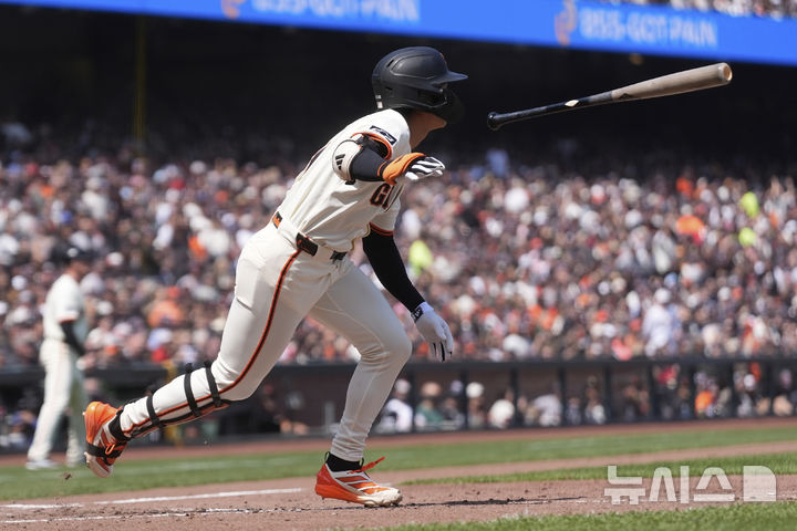 [샌프란시스코=AP/뉴시스] 샌프란시스코 자이언츠의 이정후가 3일(현지 시간) 미 캘리포니아주 샌프란시스코 오라클 파크에서 열린 2025 메이저리그 콜로라도 로키스와의 경기 6회 말, 1타점 적시타를 치고 있다. 이정후는 4타수 1안타 1타점 1득점을 기록했고 샌프란시스코는 6-3으로 승리했다. 2025.05.04.