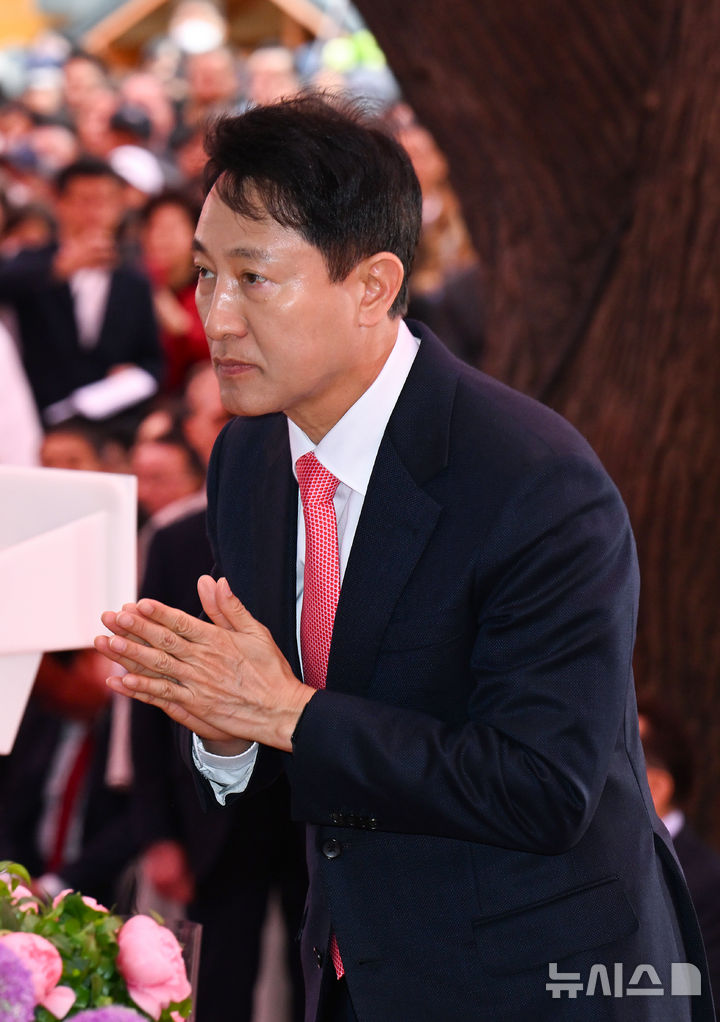 헌촉 후 합장하는 오세훈 시장