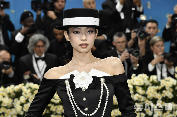 [뉴욕=AP/뉴시스] 블랙핑크 제니가 5일(현지 시간) 미국 뉴욕의 메트로폴리탄 미술관 의상 연구소 전시회 개막 기념 자선 갈라(멧 갈라) ‘슈퍼파인: 블랙 스타일 테일러링'(Superfine: Tailoring Black Style)’에 참석해 포토타임을 갖고 있다. 1948년에 시작된 멧 갈라는 매년 5월 첫째 주 월요일에 열리며 단순한 전시회 개막을 넘어 패션, 예술, 문화가 융합되는 글로벌 문화 행사로 자리매김했다. 2025.05.06.
