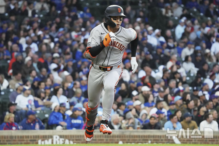 [시카고=AP/뉴시스] 샌프란시스코 자이언츠의 이정후가 5일(현지 시간) 미 일리노이주 시카고 리글리 필드에서 열린 2025 메이저리그 시카고 컵스와의 경기 4회 초 선두 타자로 나와 좌전 안타를 친 후 1루로 달리고 있다. 2025.05.06.