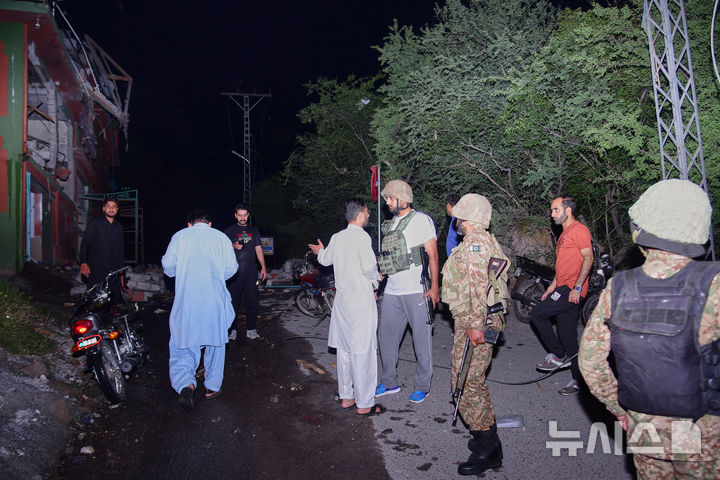 [무자파라바드=AP/뉴시스] 7일(현지 시간) 파키스탄령 카슈미르 무자파라바드 인근에서 취재진과 보안군 관계자들이 인도의 미사일 공격으로 추정되는 피해 현장에 모여 있다. 인도 정부는 이날 새벽 파키스탄령 카슈미르 9곳을 공격하는 ‘신두르 작전’을 개시했다고 밝혔다. 2025.05.07.
