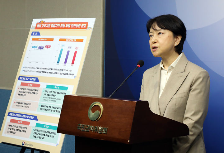 [세종=뉴시스] 강종민 기자 = 유현숙 국민권익위원회 권익개선정책국장이 7일 세종시 정부세종청사에서 해외 교육기관 졸업자의 취업 부담 완화 방안을 발표하고 있다. (사진=권익위 제공) 2025.05.07. [email protected] *재판매 및 DB 금지