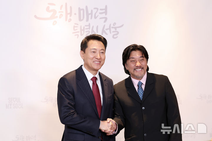 [서울=뉴시스] 정병혁 기자 = 오세훈 서울시장이 7일 서울 중구 서울시청 집무실에서 열린 서울시 홍보대사 위촉식에서 홍보대사로 위촉된 에드워드 리 셰프와 인사를 나누고 있다. (공동취재) 2025.05.07. [email protected]
