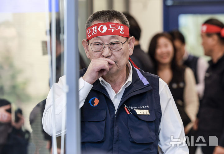 [서울=뉴시스] 정병혁 기자 = 박점곤 전국자동차노동조합연맹 서울시버스노동조합 위원장이 8일 서울 서초구 전국자동차노동조합연맹에서 열린 전국자동차노동조합연맹 대표자 회의에 참석하고 있다. 2025.05.08. [email protected]