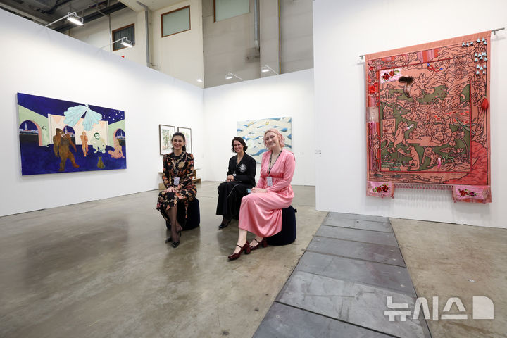 [부산=뉴시스] 박진희 기자 = 러시아 미스(MYTH) 갤러리 올라 프로파틸로(오른쪽) 대표가 8일 부산 해운대구 벡스코 전시장에서 열린 '아트부산 2025' VIP 프리뷰에 참여하고 있다. 이날 VIP 프리뷰를 시작으로 11일까지 열리는 아트부산은 국내 갤러리를 비롯해 17개국 109개 갤러리가 참여한다. 2025.05.08. [email protected]