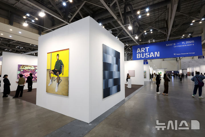[서울=뉴시스] 박진희 기자 = '아트부산 2025' VIP 프리뷰가 열린 8일 부산 해운대구 벡스코 전시장을 찾은 관람객들이 가나아트 작품을 둘러보고 있다. 이날 VIP 프리뷰를 시작으로 11일까지 열리는 아트부산은 국내 갤러리를 비롯해 17개국 109개 갤러리가 참여한다. 2025.05.08. [email protected]
