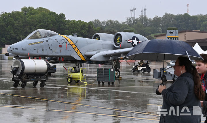 [평택=뉴시스] 김종택 기자 = 2025 오산 에어파워데이 미디어데이 행사가 열린 9일 경기 평택시 주한미군 오산공군기지에 A-10 썬더볼트 공격기가 전시돼 있다. 2025.05.09. [email protected]