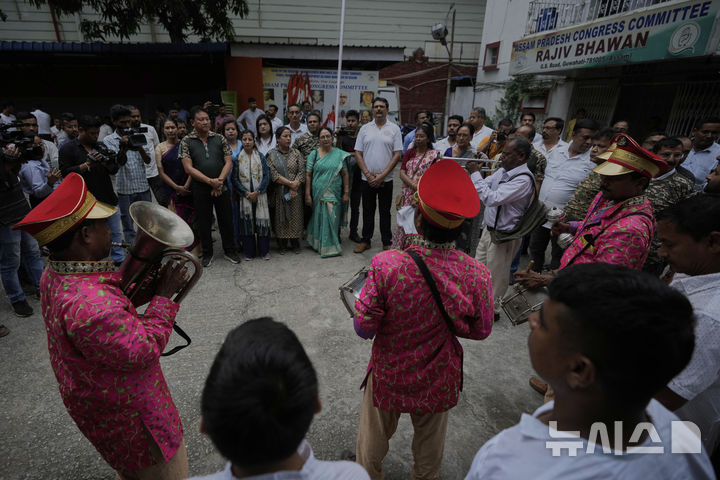 [구와하티=AP/뉴시스] 9일(현지 시간) 인도 구와하티에서 국민회의당 지지자들이 파키스탄에 대한 '신두르 작전'의 성공을 축하하며 인도군을 지지하는 집회를 열고 있다. 2025.05.10.