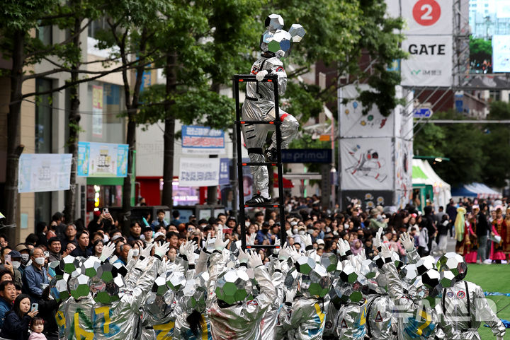 [대구=뉴시스] 이무열 기자 = 10일 대구 중구 국채보상로 일대에서 열린 ‘2025 파워풀대구 페스티벌’에서 축제의 하이라이트인 퍼레이드가 펼쳐지고 있다. 2025.05.10. [email protected]