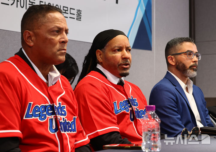 [서울=뉴시스] 박주성 기자 = 메이저리그 '레전드' 매니 라미레즈가 11일 오전 서울 고척 스카이돔 다이아몬드룸에서 2025 레전드 매치 관련 기자회견에서 취재진 질문에 답하고 있다. 2025.05.11. [email protected]