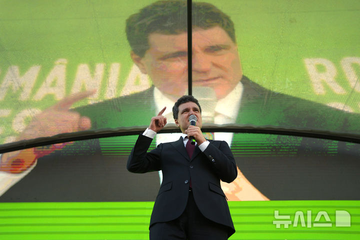 [부쿠레슈티=AP/뉴시스] 니쿠쇼르 단 루마니아 대통령 후보가 11일(현지 시간) 루마니아 부쿠레슈티에서 열린 유세 현장에서 지지자들에게 연설하고 있다. 루마니아는 오는 18일 부쿠레슈티 시장인 단 후보와 제1야당 결속동맹(AUR) 제오르제 시미온 대표가 대선 결선 투표를 치른다. 2025.05.12.