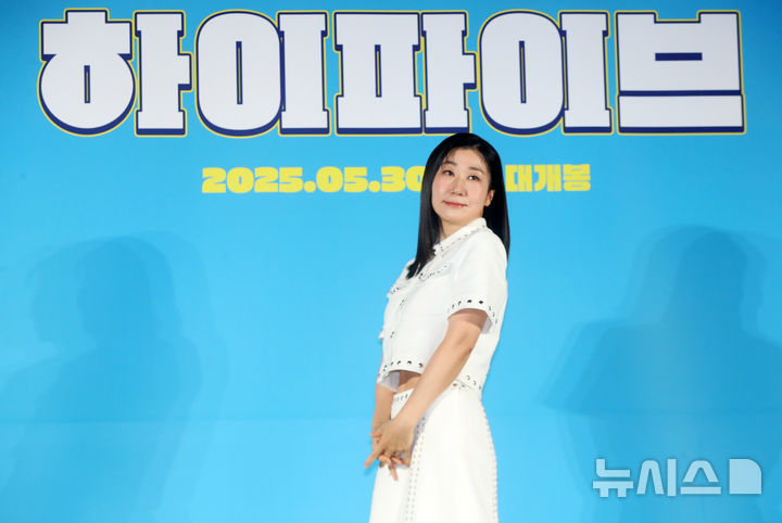 [서울=뉴시스] 김혜진 기자 = 배우 라미란이 12일 오전 서울 광진구 롯데시네마 건대입구에서 열린 영화 '하이파이브'(감독 강형철) 제작보고회에서 포즈를 취하고 있다.