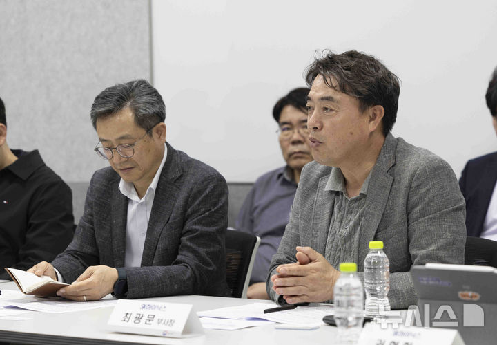 [서울=뉴시스] 김근수 기자 = 최광문 SK하이닉스 부사장이 12일 서울 중구 비즈허브서울센터에서 환경부 주관으로 열린 반도체 디스플레이 업계 실무협의체 회의에서 인사말을 하고 있다. 2025.05.12. [email protected]