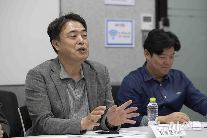 [서울=뉴시스] 김근수 기자 = 최광문 SK하이닉스 부사장이 12일 서울 중구 비즈허브서울센터에서 환경부 주관으로 열린 반도체 디스플레이 업계 실무협의체 회의에서 인사말을 하고 있다. 2025.05.12. [email protected]