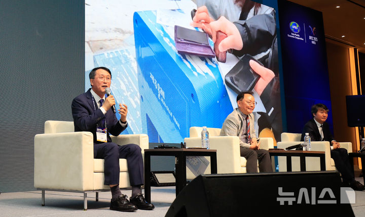 [서귀포=뉴시스] 우장호 기자 = 김일환 제주대학교 총장이 12일 오후 제주 서귀포시 부영호텔 우정홀에서 열린 '글로벌 교육혁신 고등교육 네트워크 포럼'(2025 제주 RISE-글로컬대학 포럼)에서 '글로벌 K-교육·연구 런케이션, 제주'를 주제로 발제하고 있다. 2025.05.12. [email protected]