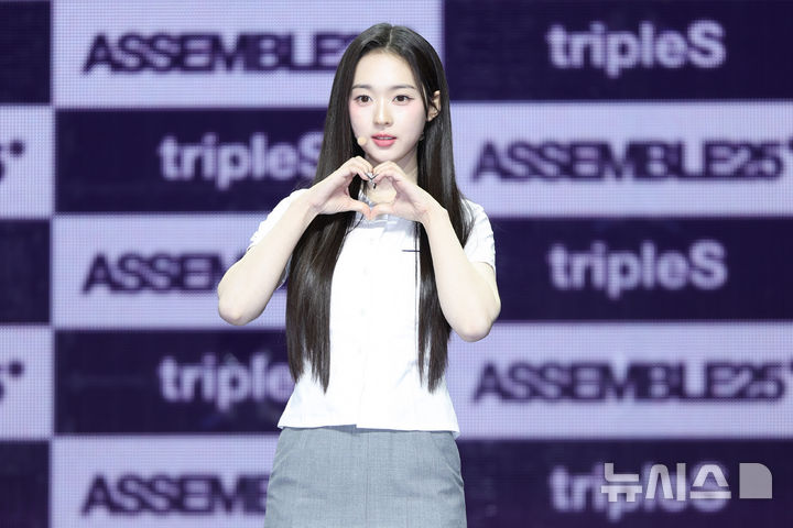 [서울=뉴시스] 황준선 기자 = 걸그룹 트리플에스(tripleS)의 김수민이 12일 오후 서울 용산구 블루스퀘어에서 열린 정규 2집 어셈블25(ASSEMBLE25) 발매 쇼케이스에서 포즈를 취하고 있다.