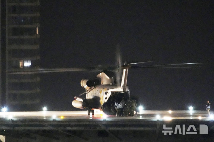 [텔아비브=AP/뉴시스] 12일(현지 시간) 팔레스타인 무장 정파 하마스로부터 석방된 미국·이스라엘 이중국적 병사 에단 알렉산더가 헬기를 타고 이스라엘 텔아비브의 병원에 도착하고 있다. 알렉산더는 미국 뉴저지 출신으로, 아직 가자지구에 억류된 마지막 미국인 생존자로 알려졌다. 2025.05.13.