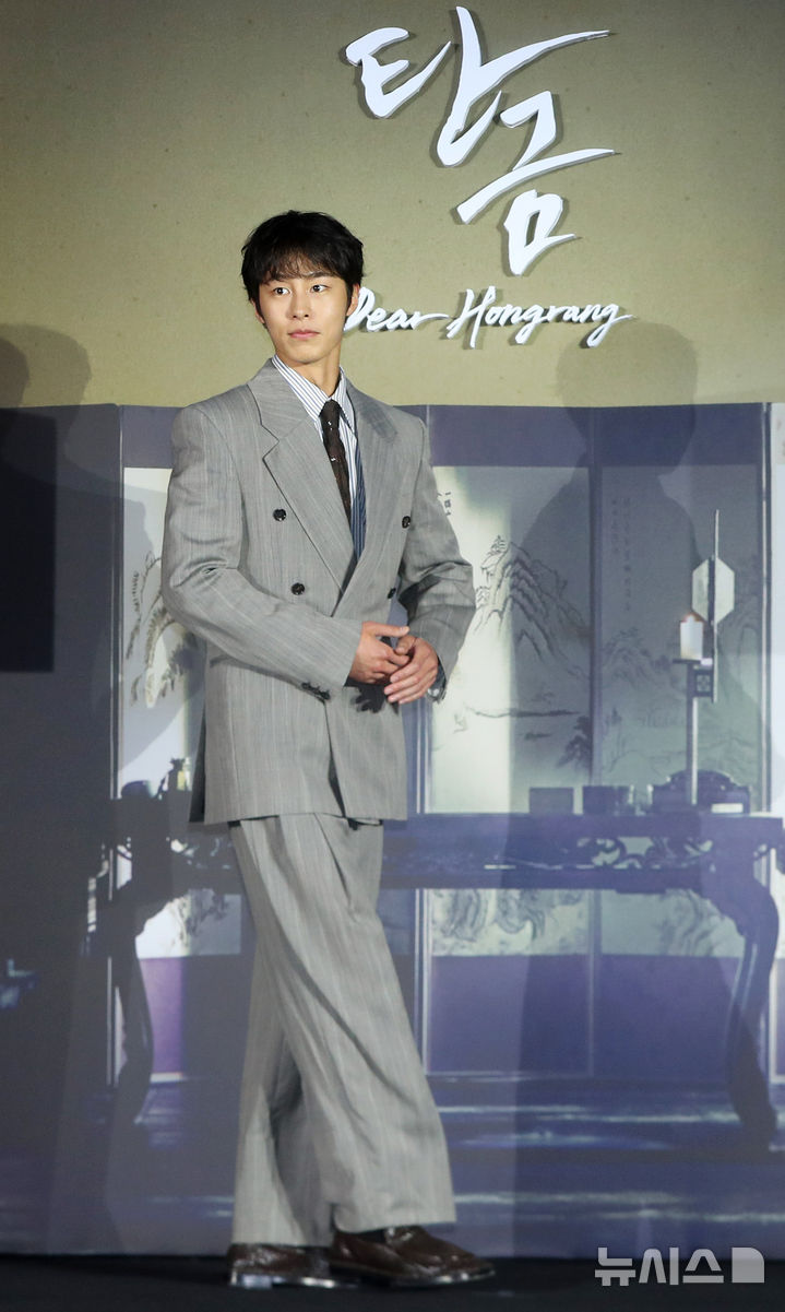 [서울=뉴시스] 김혜진 기자 = 배우 이재욱이 13일 오전 서울 구로구 라마다 호텔에서 열린 넷플릭스 시리즈 '탄금' 제작발표회에서 포즈를 취하고 있다.
