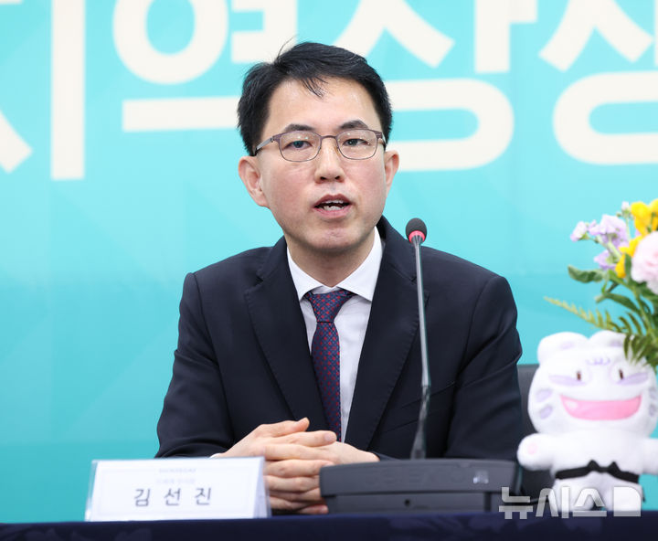 [서울=뉴시스] 김금보 기자 = 김선진 신세계 부사장이 13일 서울 중구 서울시청에서 열린 '서울특별시X농림축산식품부X롯데카드X신세계, 지역상생 청년 창업 활성화 위한 업무협약식'에서 인사말을 하고 있다. 2025.05.13. [email protected]