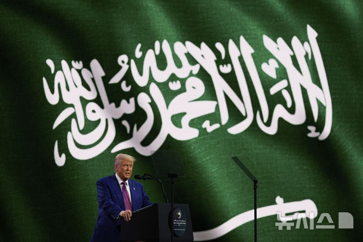 [리야드=AP/뉴시스] 도널드 트럼프 미국 대통령이 13일(현지 시간) 사우디아라비아 리야드의 압둘아지즈 국왕 국제회의센터에서 열린 양국 투자 포럼에 참석해 발언하고 있다. 2025.05.14.