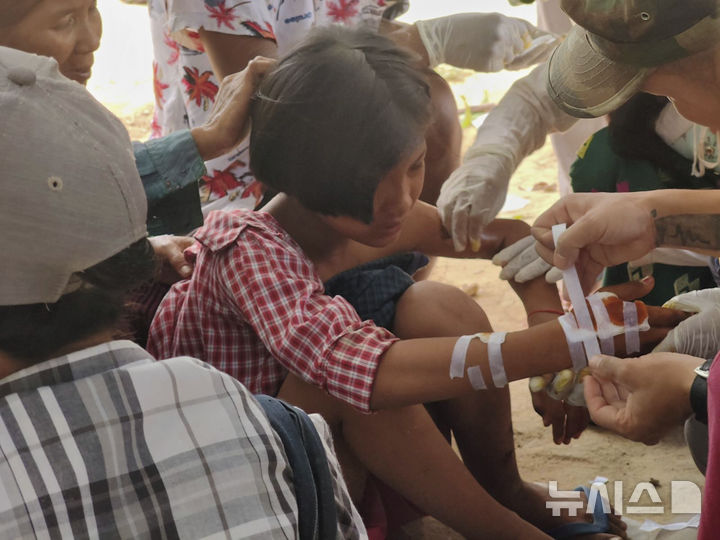 [데파인=AP/뉴시스] 지난 12일(현지 시간) 미얀마 사가잉 지역 데파인 타운십의 한 마을에서 의료진이 미얀마 군부의 학교 공습으로 부상한 아이들을 치료하고 있다. 현지 매체는 저항 세력이 운영하던 학교를 미얀마군이 폭격해 학생과 교사 등 22명이 숨지고 50여 명이 다쳤다고 전했다. 사망자 가운데 15명은 7세 아동으로 알려졌다. 2025.05.14.