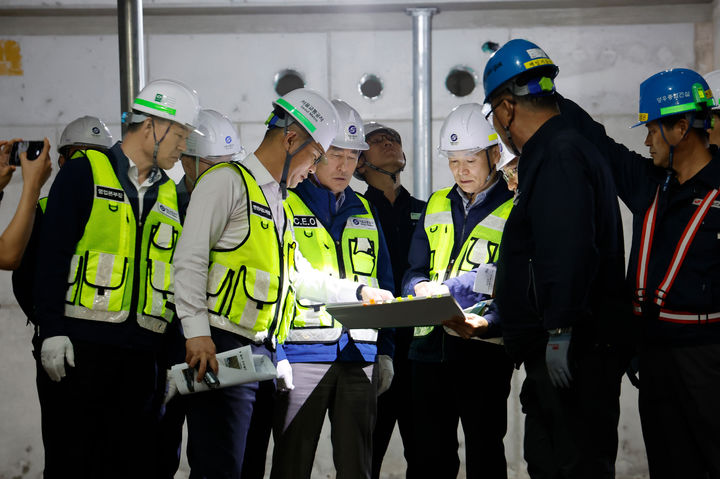 [서울=뉴시스] 백호 서울교통공사 사장이 14일 서울 군자차량기지 내 1~9호선 지능형 스마트 통합 관제센터 신축공사 현장을 방문해 공사 현황을 점검하고 있다. (사진=서울교통공사 제공) 2025.05.14. [email protected] *재판매 및 DB 금지