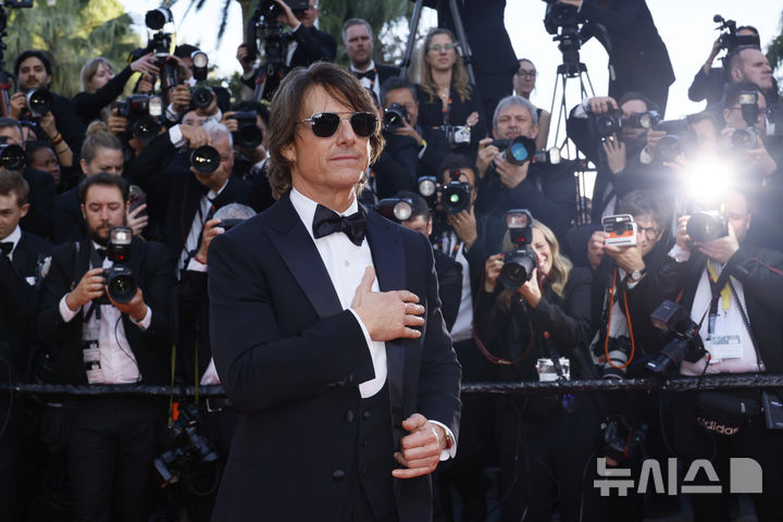 [칸=AP/뉴시스] 배우이자 제작자인 톰 크루즈가 14일(현지 시간) 프랑스 남부 칸에서 열린 제78회 칸국제영화제 ‘미션 임파서블: 파이널 레코닝’ 시사회에 참석해 레드 카펫을 밟고 있다. 2025.05.15.