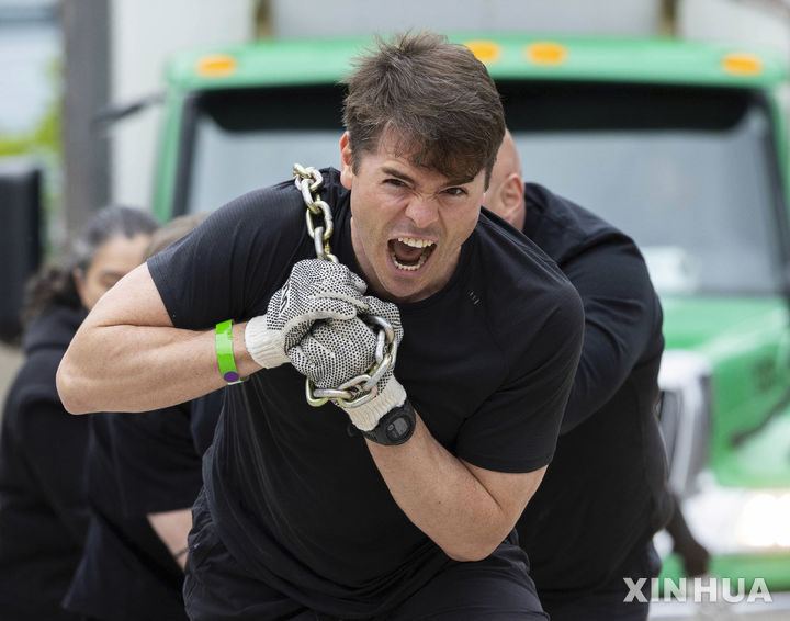 [토론토=신화/뉴시스] 14일(현지 시간) 캐나다 토론토에서 ‘세컨드 하비스트 트럭 끌기 대회’가 열려 참가자들이 트럭 끌기에 도전하고 있다. 이 행사는 음식 낭비를 줄이고 식량 불안을 해소하기 위한 기금 마련을 목적으로, 캐나다 최대 음식 재분배 단체인 ‘세컨드 하비스트’(Second Harvest)가 주최했다. 세컨드 하비스트는 유통 기한이 임박했거나 소비되지 않은 식품을 수거해 다시 배분함으로써 음식 낭비를 줄이는 데 앞장서고 있으며, 이날 행사에는 50개 이상의 팀이 참가한 것으로 알려졌다. 2025.05.15.