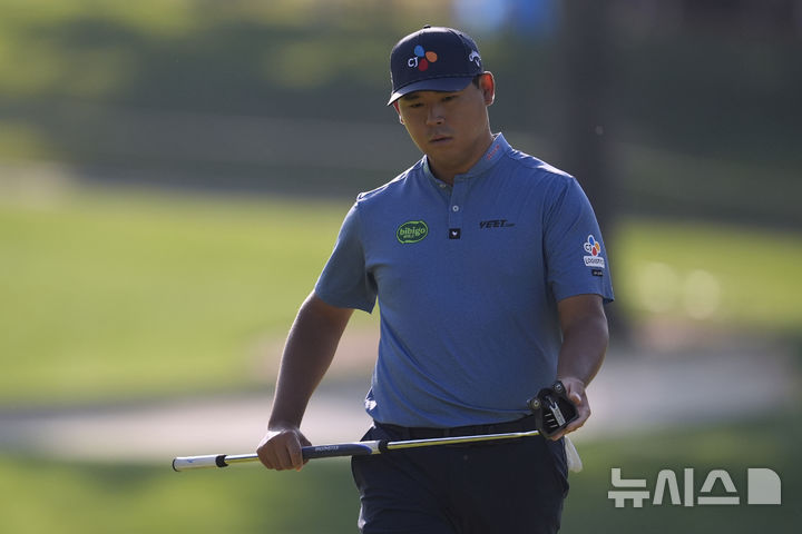 [샬럿=AP/뉴시스] 김시우가 15일(현지 시간) 미 노스캐롤라이나주 샬럿의 퀘일 홀로 클럽에서 열린 미국프로골프(PGA) 투어 PGA 챔피언십 첫날 1번 홀에서 퍼트 준비를 하고 있다. 김시우는 1오버파 공동 60위에 이름을 올렸다. 2025.05.16.