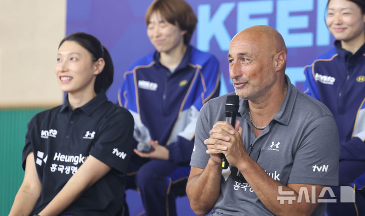[인천=뉴시스] 전진환 기자 = 16일 오후 인천 부평구 인천삼산월드체육관에서 열린 ‘KYK 인비테이셔널 2025’ 미디어데이에서 여자배구 세계올스타팀 마르첼로 아본단자(이탈리아) 감독이 발언하고 있다. 2025.05.16. [email protected]