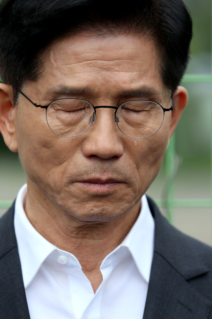 [광주=뉴시스] 조성봉 기자 = 김문수 국민의힘 대통령 후보가 17일 오전 광주 북구 광주교도소 터를 찾아 울먹이고 있다.(사진=김문수캠프 제공) 2025.05.17. [email protected]