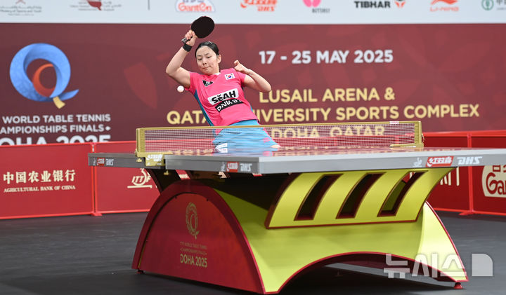 [도하(카타르)=뉴시스] 사진공동취재단 = 박가현이 18일(현지 시간) 카타르 도하 카타르대학교 스포츠 콤플렉스에서 열린 2025 국제탁구연맹(ITTF) 세계선수권대회 개인단식 128강 싱가포르 탄 자오윈과 경기를 펼치고 있다. 2025.05.18. [email protected]