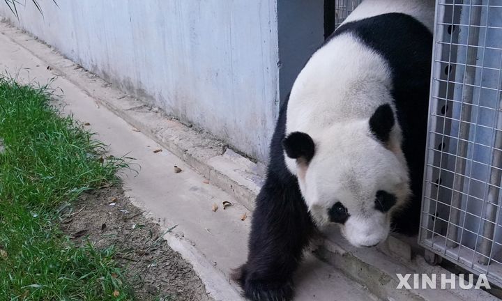 [아얀=신화/뉴시스] 말레이시아에서 11년 만에 돌아온 자이언트 판다 '싱싱'이 18일(현지 시간) 중국 쓰촨성 아얀에 있는 중국 자이언트판다보호연구센터 검역 구역으로 들어가고 있다. '싱싱'과 '량량'이라는 이름의 판다 한 쌍이 지난 2014년 중국-말레이시아 수교 40주년을 기념해 10년간 말레이시아에 임대됐다가 이날 귀환했으며 최소 30일간 검역 절차를 거친다. 2025.05.19.