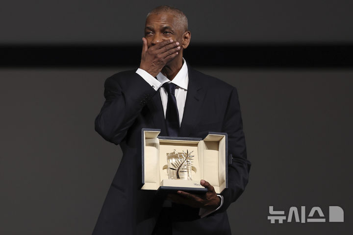[칸=AP/뉴시스] 배우 덴젤 워싱턴이 19일(현지 시간) 프랑스 칸에서 열린 제78회 칸국제영화제 영화 '천국과 지옥'(Highest 2 Lowest)' 시사회에 앞서 명예 황금종려상을 받은 뒤 웃고 있다. 2025.05.20.