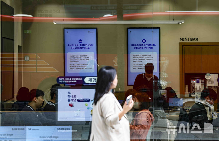 [서울=뉴시스] 김근수 기자 = 20일 서울 시내의 한 SK텔레콤 직영점에서 소비자들이 유심 교체 관련 상담을 받고 있다.